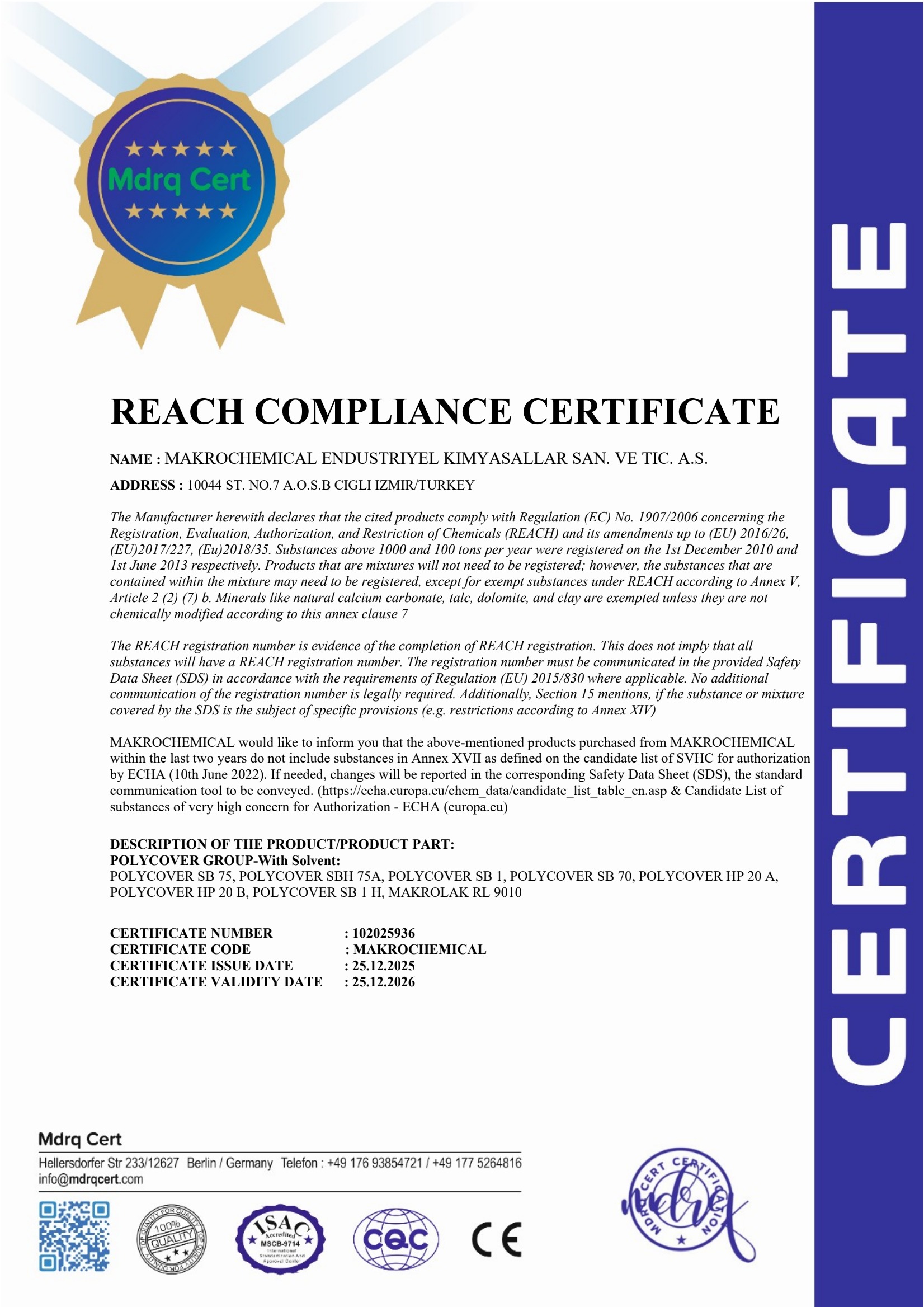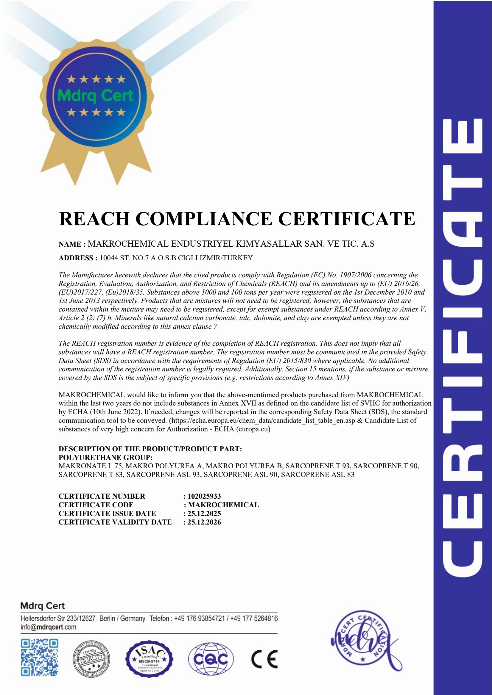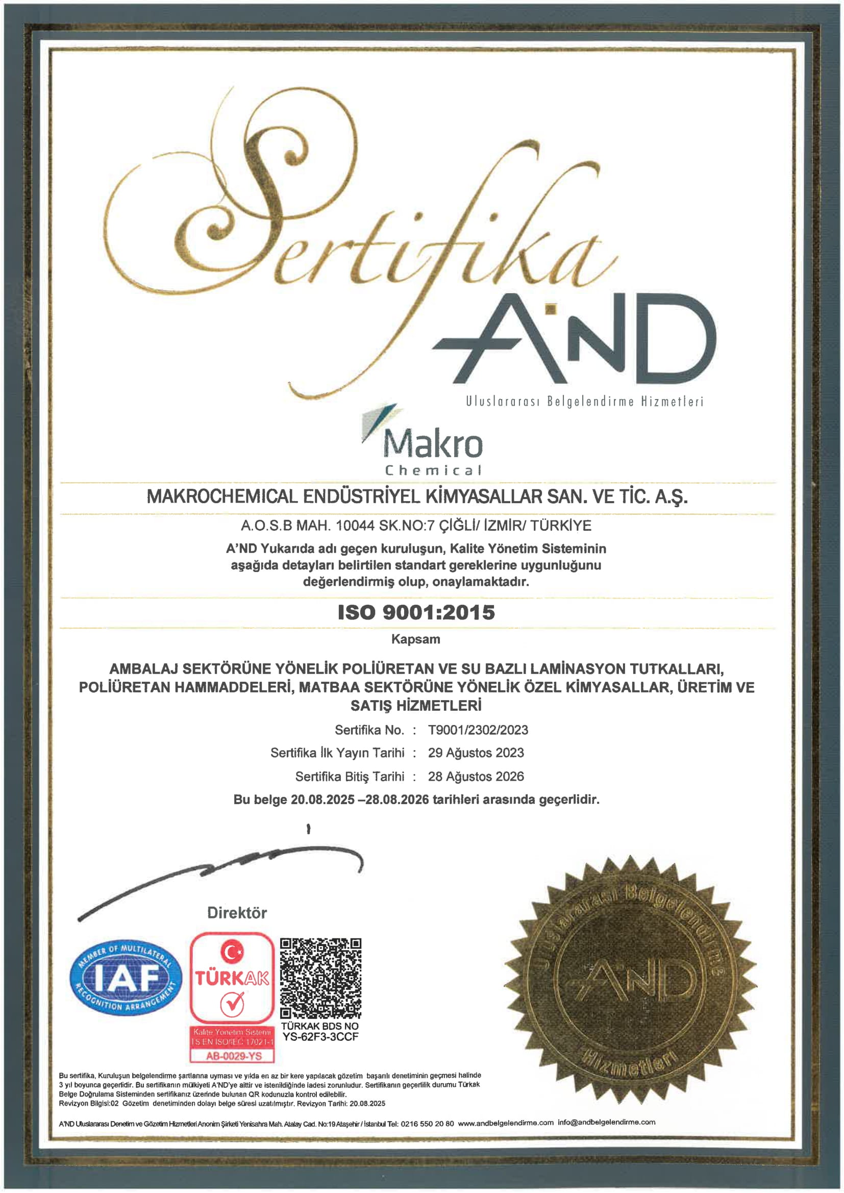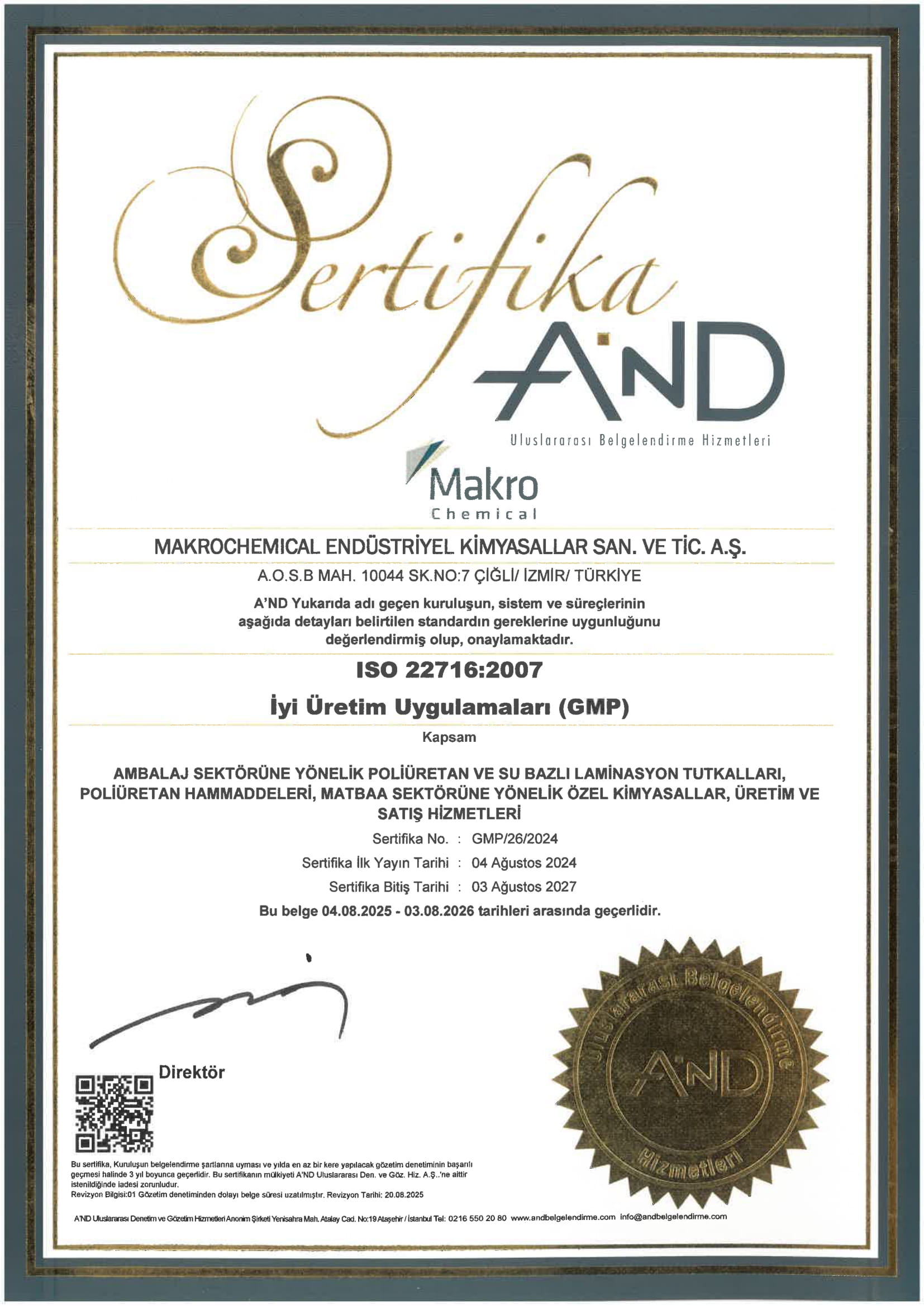 Makro Chemical için kalite bir sonuç değil, üretimin her aşamasına yayılmış bir disiplindir. Gıda güvenliğinden iş sağlığına kadar tüm süreçlerimizi uluslararası geçerliliği olan ertifikalarla tescilliyoruz. Mevzuatlara tam uyum, global üreticilerin performans ortağıolmamızın temel şartıdır.